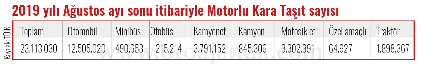 Ağustos ayında Türkiye’de toplam 39.110 adet taşıtın trafiğe kaydı yapıldı. Bu rakamla Türkiye’deki araç sayısı 23 milyon 113 bini geçti.