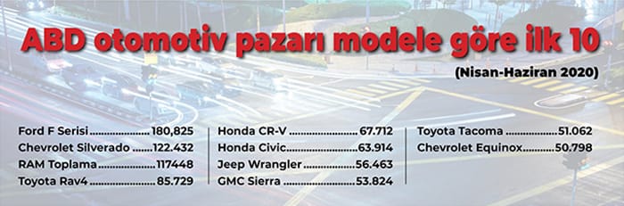 Açıklanan rakamlara bakıldığında Amerikalıların pick up ve SUV tarzı araçlara yönelik aşkının devam ettiği görülüyor. Toplam pazar pandemi döneminin etkisinin bariz yaşandığı ikinci çeyrek yani nisan-haziran arasında yüzde 35 daralmış durumda.