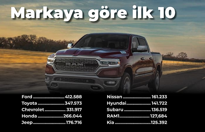 Ford, Chevrolet ve Ram markalarının birer kamyonet modeli podyumun ilk üç basamağındaki yerini koruyorlar.