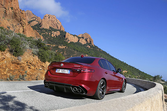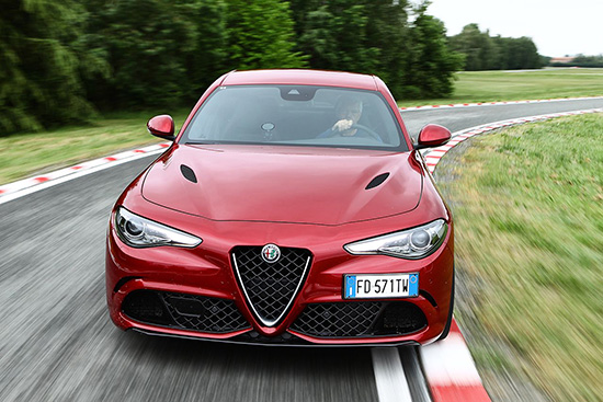 Giulia ailesi 503 beygirlik gücünü 2.9 litrelik V6 bi-turbo benzinli motordan alan kırmızı renkli Giulia Quadrifoglio ile tamamlanıyor. Süpersporcu diyebileceğimiz bu modelde ultra hafif 19 inçlik jantlar, karbon seramik frenler ve Sparco koltuklar ilk bakışta göz çarpıyor.