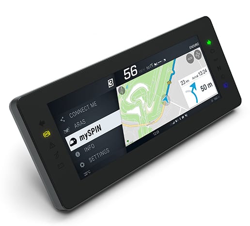 Örneğin; bir akıllı telefon uygulamasının içeriği, motosiklet ekranının boyutuna uygun bir şekilde ilgili bilgileri göstermek için mySPIN ile otomatik olarak bağlanıyor. Bölünmüş ekran sayesinde de ekran, hız ve uyarılar gibi temel bilgiler gösterilmeye devam ediyor.