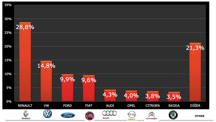 Yapılan araştırmaya göre bu yılın 9 ayında Türkiye operasyonel kiralama sektörünün araç parkında en çok tercih edilen markalar şöyle sıralandı: