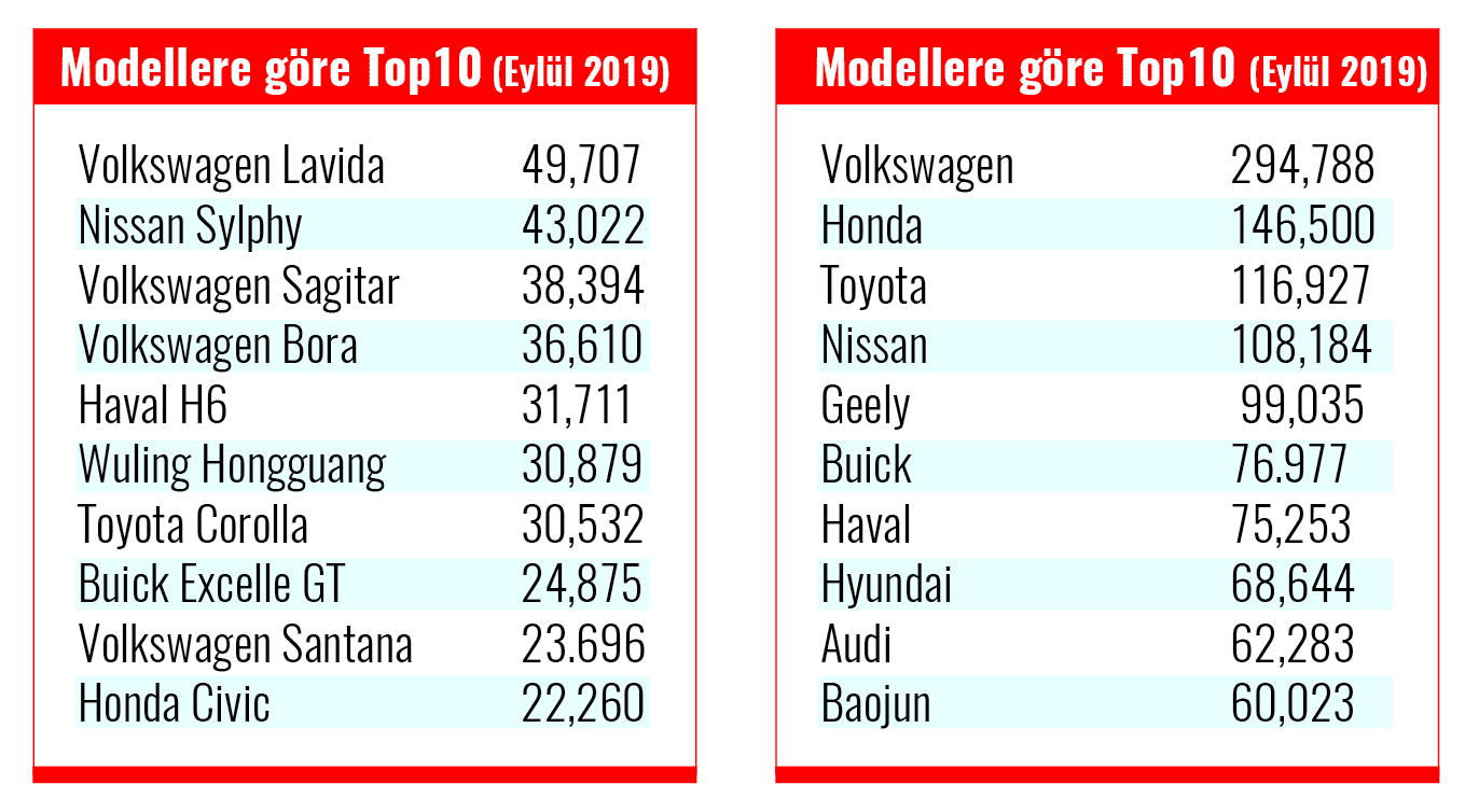 ABD (Amerika Birleşik Devletleri) ile Çin arasındaki büyük ticaret savaşı süreci devam ediyor. Öte yandan Çin otomobil satışları da ağustos ayına kadar çift haneli düşüş yaşıyor. Bu ciddi daralma sonunda hız kesti ve eylül ayında tek hanelere geriledi. Çin otomobil piyasasında Türkiye’de de başa güreşen Toyota Corolla ve HOnda Civic ilk 10 listesinde.