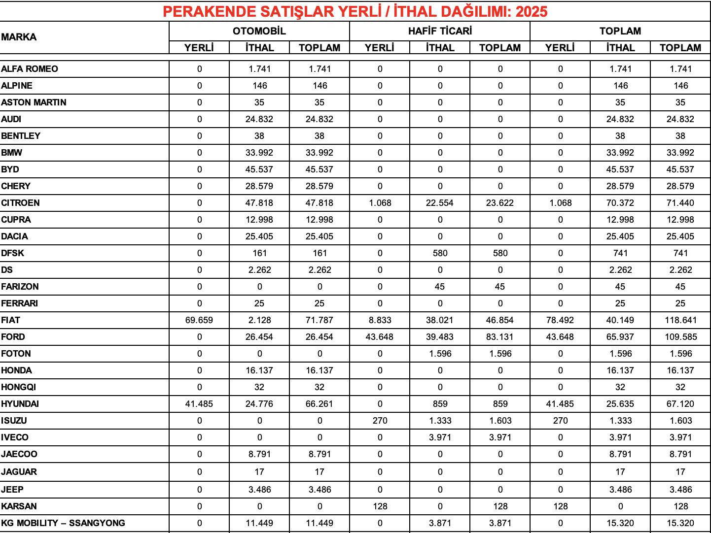 - Renault, 2025 yılında ulaştığı satış adedi ve %10,5’lik pay ile önemli bir büyüme elde ederek hem toplam pazarda hem de otomobil pazarında liderlik koltuğuna oturdu.