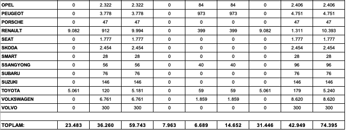 Türkiye otomobil ve hafif ticari araç toplam pazarı, 2020 yılı Şubat sonunda 74 bin 395 adet olarak gerçekleşti. 2019 yılı iki aylık dönemde 39.248 adet toplam satış yapılmıştı.